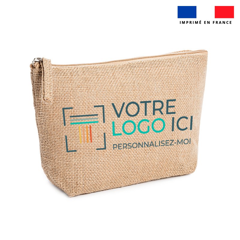 This custom jute kit is perfect to store your toiletries or your make-up. Choose to customize your kit with the'printing on jute canvas by Tissus Print.