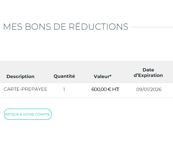 Votre solde est consultable à tout moment dans l'onglet de votre espace client "Mes Bons de Réductions".