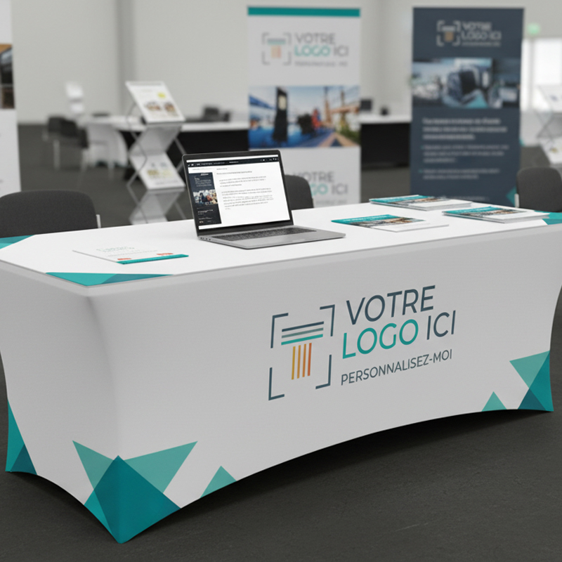 Crea una presentazione professionale e curata ai tuoi eventi con il nostro copertina da tavolo. Estensibile, comodo e semplice da installare, veste istantaneamente le vostre tavole mettendo in risalto il vostro logo, messaggio o design unico. Ideale per sublimare le aspettative di accoglienza in occasione di saloni, ricevimenti, fiere, esposizioni, seminari o congressi.